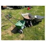 - Lot #315 - Scotts Seed Spreader, Wheelbarrow, Yard Cart