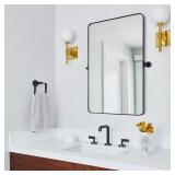 CLAVIE 22 in. W x 30 in. H Medium Square Metal Framed Pivot Mirror Wall Bathroom Vanity Mirror Tilting Mirror in Black