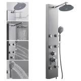 ROVOGO 304 Stainless Steel Shower Panels System with 8-inch Rainfall Shower, 6 Body Jets and 5-Setting Handheld Shower Wand, Shower Tower with Adjustable Head, Stainless Steel Brushed