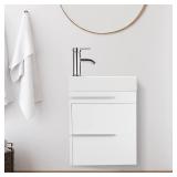 Spurgehom 16" Bathroom Vanity W/Sink Combo for Small Space, Wall Mounted Bathroom Cabinet Set with Chrome Faucet Pop Up Drain U Shape Drain
