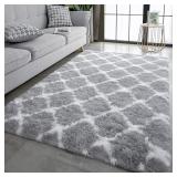 Ultra Soft Fuzzy Rugs for Bedroom Grey and White, 6x9