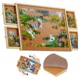 1500 Piece Wooden Jigsaw Puzzle Table - 4 Drawers, Rotating Puzzle Board | 35” X 28” Jigsaw Puzzle Board | Puzzle Cover Included - Portable Puzzle Tables for Adults and Kids by Beyond Innoventions