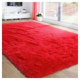 Red Fluffy Living Room Rugs, Furry Area Rug 4x6