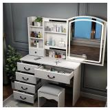 - 【SUFFICIENT STORAGE CAPACITY】Our makeup vanity's hidden storage contains 3 compartments, and the vanity desk also contains 6 drawers and 3-tier open storage cabinets for your additional items,drawers and shelves on the desktop provide you with plenty of storage space. The large storage space allows you to put all your skin care products, cosmetics, jewellery and other beauty supplies.