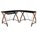 - Stage the perfect setting in your office with this stylish and affordable glass l-shaped desk. Boosting a large work surface to accommodate your laptop or desktop and a frame that will add a stylish appearance to your room.