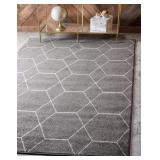 Unique Loom Trellis Frieze Collection Area Rug - Geometric (8' x 10', Dark Gray/ Ivory)