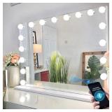 Bobening Vanity Mirror for Makeup Bluetooth, Extra Large Hollywood Lighted Mirror with 18 Dimming LED Bulbs Smart, Tabletop/Hanging Cosmetic Mirror with Touch Screen & USB Charging Port & Speaker