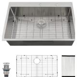 - 【Kitchen Sink Dimensions and package】Exterior Size:33"(L) x 22"(W) x 10"(D),--Minimum Cabinet Size: 36 inch. Drainage holes:3.5" in diameter. The packages comes with 33 inch drop in Kitchen Sink, drain assembly, Roll Up Rack, Bottom Rinse Grid, Cutout Template, Installation Instruction and Mounting Hardware