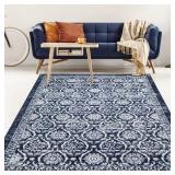 Antep Rugs Alfombras Non-Skid (Non-Slip) 5x7 Rubber Backing Floral Geometric Low Profile Pile Indoor Area Rugs (Navy Blue, 5' x 7')