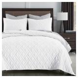 Quilt Set King Size White, Classic Geometric Diamond Stitched Pattern, Ultra Soft Microfiber Lightweight Bedding Set Quilted Bedspread Coverlet for All Season 3 Pieces (1 Quilt and 2 Pillow Shams)