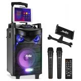 Moukey Karaoke Machine, PA System Woofer, Portable Bluetooth Speaker w/ 2 Wireless Microphones, Lyrics Display Holder, Party Lights & Echo/Treble/Bass Adjustment, Support TWS/REC/AUX/MP3/USB/TF/FM