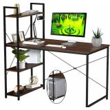 Halter Computer Desk with Shelves, 47 Inch Writing Table for Home Office, Study Desk with Storage for Work, Writing, and Homework, Modern, Easy Assembly, Brown