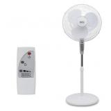 PEDESTAL FAN WITH REMOTE CONTROL– This stand up fan (16.5 x 16.5 x 52 inches) rests on the floor and creates fast cooling in medium to large rooms of the home like bedrooms, offices, garages, RVs, and dorms.