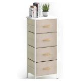 JSungo Dresser Storage Tower with 4 Drawers, Fabric Organizer Unit with Wooden Top for Bedroom, Living Room, Closets, 4 Tier Fabric Shelf with Steel Frame and Handles for Printer, Beige