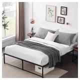 VECELO 14 Inch Bed Frame/No Box Spring Needed/Mattress Foundation/Steel Slat Support Black (Full), Metal Platform A