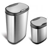 NINESTARS CB-DZT-50-13/12-13 Automatic Touchless Infrared Motion Sensor Trash Can Combo Set, 13 Gal 50L & 3 Gal 12L, Stainless Steel Base (Oval, Silver/Black Lid)