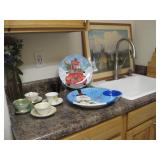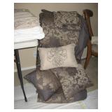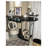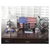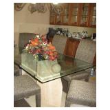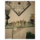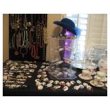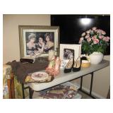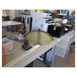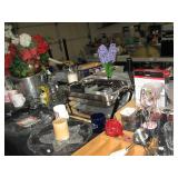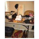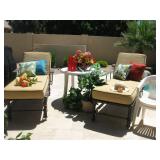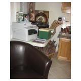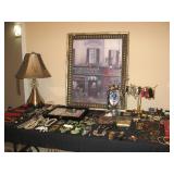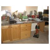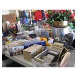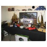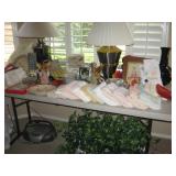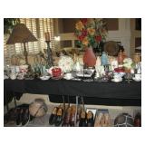 Upholstered sectional; matching chair and ottoman; Coffee table set; Beautiful glass top dining room table with six upholstered chairs, matching sofa table; Glass top kitchen table with four chairs on casters; Lamps; Four large artificial trees; Nativity set; Very nice men's XL clothing including shoes and leather coats; perfect Dr. OZ king mattress set; Thomasville casual round table set, one leaf, four chairs; Upholstered ivory sofa; Various side night tables/cabinets; Space heater; Comforter sets; Much jewelry; Many purses; Ladies clothing including coats size 10-14 and shoes; Many sizes of artificial plants; Baskets; Over-size wall mirror; vintage cradle; Two petite desks; Round clothes rack; Area rugs; Air compressor; ladder; Black leather sofa; Nice light fixtures; Two bicycles; Card tables; Brass/stone/signed ship art; Office chair; Office supplies; Printers; Record albums; File cabinet; Patio butterfly bench ; Gas only Napoleon BBQ grill; Two very nice patio lounge chairs w/cushions; Model car and beer stein collections; Yard tools; Decor throughout home; |