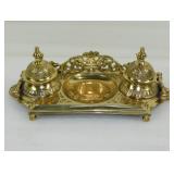 Vintage Cast Brass Double Inkwell Stand