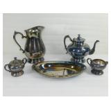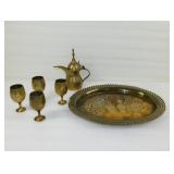 Six Piece Brass Tray with Goblets and Pitcher