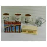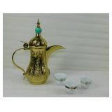 Vintage Engraved Brass Coffee Pot with Three Cups