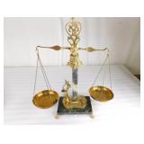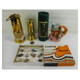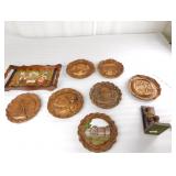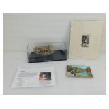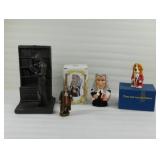 Brass Horse Heads Mounted on Marble and Ash Tray with Welsh Lady