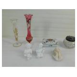 Hobnail Cruet Bottle Small Wedgwood Vase and Other Small Vases