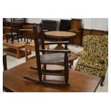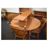 Furniture: Round Maple Table w/4 Chairs, Maple Hutch, Maple Server, Various Shelves, Chairs, Stands, and Other