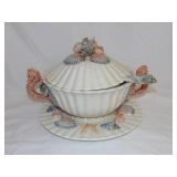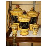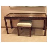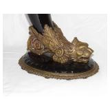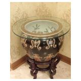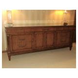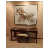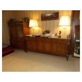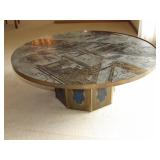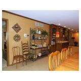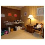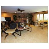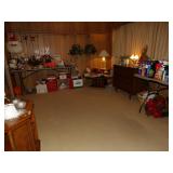 FURNITURE + HOME DECOR Mid-Century Modern: Signed Chan Bronze Circular Coffee Table by Philip and Kelvin Laverne C 1960's (will pre-sell this table only) Pennsylvania House oak dining room table with 8 chairs and gorgeous leaded glass lighted china cabinet, Mid-Century Modern dry bar cabinet server, wall art, brass and glass wheeled bar cart, custom silk plant trees, Asian inspired carved wood mirror, Asian inspired hand painted chest with glass top and brass lock, Barbara Berry Gold Leaf Chest by Baker Furniture, 2pc Sherill love seats, 4 panel Asian screen, Henredon round and square Chestnut colored wood end tables, plume gold and black Sherill sofa, woodblock metallic Stephen White Jolie wall art signed and numbered, Romeo and Juliet Franklin Mint candlestick holders, tea cups and saucers, 5 shelf brass and glass book shelf, metal and marble top kitchen bakers rack, Lenox decor accessories, Mid Century Modern art by Anita, 2 smaller size Mid Century Moder dressers, Thomasville burl wood media cabinet, antique waterfall dresser, Mastercraft brass and glass coffee table and end tables, Henredon chestnut wood with black fabric side chair, oriental rug, Oriental gold leaf wall wood carving, arched brass mirror, brass and glass sofa table, Art Deco suede woman wall art by M, 3 panel mirror screen, antique brass swan floor lamp, Burnhardt burgundy easy chair, crystal lamps, John M. Smyth wood wall set that includes bookshelves and desk, desk chair, Ethan Allen dresser and nightstand, geunine hand blown Asian lamp, G. Sherman oil painting, Clay Anderson wall art, leather sofa, Seeburg Console juke box, black lacquer 4 drawer dresser, Mid Century Modern 5pc black vinyl bar stools, hall tree, Fredrick Cooper lamps, tv trays, Wildwood Imports Mudman, Castilian crystal hinged box, John Richard home accessories, Maitland Smith hinged floral box, Mid Century Modern J. Pinal wood carved figures, Kasmir walnut trick jewelry box, brass art deco dancing girl, Geisha Lladro, Austin Productions Zara Vase from the Kinder Collection, Maitland Smith Chinese circular vase, Wildwood Accents octagon storage box, LaBarge brass tea cart, Fitz and Floyd Christmas holiday porcelain serving pieces, Lenox Pencil Santas, Silvestri paper mache swan serving bowl, Blue Sky Heather Goldminc candle holder, Koestel Christmas ornaments, Simpick Character Carolers dolls set, Oriental gold leaf Buddha on silk wall art, Art Verrier French crystal bowl, Waterford crystal, 1960's signed Ross Wetzel art, Van Teal lucite lamp, Benko lamps and more. KITCHEN: Small appliances, pots and pans, utensils, bakeware, serve ware, and more to come. CLOTHING AND JEWELRY: Lady's clothing including 2 fur coats. Jewelry by Crown Trifari, Swarovski Napier, Monet Lacome, Baer SF, Les Bernard, M. Haskell, Lustern, and more. Whiting Davis, Michael Kors, Rodo, Sharif, and more handbags. Chanel scarf and other vintage scarves. GENERAL: Cleaning products, garden tools, outdoor patio furniture, holiday decor including Fitz and Floyd, Brio toys, Burques pewter figurines, barware, towels, linen, Kirby G Six vacuum cleaner, books, CDs, silk plants, vases, candles, and more.
