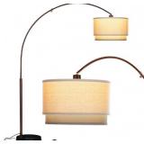Brightech Mason Arc Floor Lamp - Modern Corner Standing Lamp with Unique Hanging Drum Lamp Shade for Living Room - Bright Overhead, Curved Hanging Light for Bedroom. Library, Den - Bronze