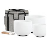 CVNC Set of 3 PCS 6" A Note 8" F Note and 10" C Note Frosted Chakra Quartz Crystal singing bowl With Free Carry Case Bag