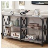 - Four X-frame braces reinforced: To reinforce the whole structure, we adopt four X-shaped heavy square steel tube frame braces designed to avoid this entry table wobbling, meanwhile thick high-grade MDF with wood grain makes the grey console table for entryway sturdy and durable. The top and bottom shelves can hold up to 280 LBS. The middle shelf can hold up to 120 LBS.