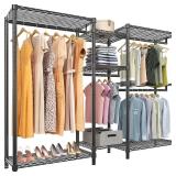 JAUREE 63 Inches Clothes Drying Rack, Stainless Steel Garment Rack Adjustable and Foldable Space Saving Laundry Drying Rack for Indoor Outdoor with 20 Windproof Hooks