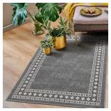 Antep Rugs Alfombras Modern Bordered 2x4 Non-Skid (Non-Slip) Low Profile Pile Rubber Backing Kitchen Area Rugs (Gray, 2'3" x 4')