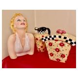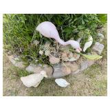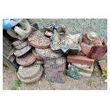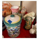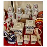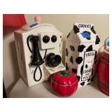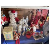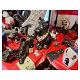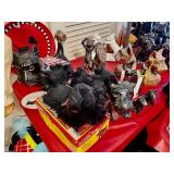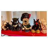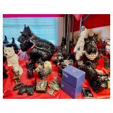 Vintage refurbished red refrigerator A huge collection of scottie terrier dogs ceramic/cast iron Collection of cookie jars vintage & antique chairs Kitchen & dining hutches Records albums Lots of yard art Plants & pots Lots of xmas Antique telephone Couches Side tables Coffee table