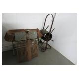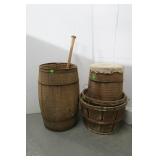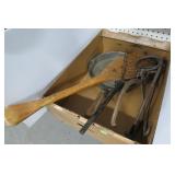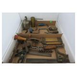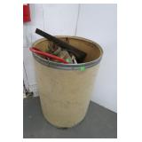 Barrel With Hand Sprayers, Handsaw, Framing Square