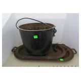 Large Copper Apple Butter Kettle With Iron Stand and Stir Paddle