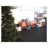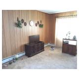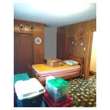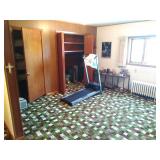 1 Everything in entryway and closet including rug, wall hanging, winter coats, electric iron, more as pictured. 2 Everything in dining area including hutch, flatware, linens, china, wall hangings, wooden trash bin, more as pictured. 3 Everything in kitchen cabinets including Hall Jewel Tea pattern dishes, Fire King, Corning Ware Blue Cornflower pattern casserole dishes, Chicago Cutlery, microwave, coffee maker, canister set, vintage cookbooks, more as pictured. 4 Everything in small main floor bedroom including hardwood dresser with dovetailed drawers and mirror, teal green Westinghouse sewing machine & cabinet, twin bed, ironing board, totes, home decorations, table linens, ornate lamp, Danielle Steel and other novels, more as pictured. 5 Contents of small main floor bathroom including hamper, cleaning supplies, linens, scale, hair dryer, curling iron, wall decorations, more as pictured. 7 Everything in living room including carpet cleaner or steamer, vintage record cabinet, desk and office supplies, cabinet with TV and four head VCR - great for transferring old tapes to digital, Precious Moments figurines, jackets, literature and reference books, wall hangings, more as pictured. 8 Everything in office including wall clock with oak cabinet, desk and rolling office chair, storage cabinet, file cabinet, banker's desk lamp, antique adding machine, trophies, folding chair, flag, more as pictured. 9 Everything in main floor master bedroom including nice bed with bedding - Seller thinks it's a queen size; gift wrap & storage bin, TV with remotes, brass spitton, wing back chair, some ladies clothing, slippers, mirrored dresser tray, nice nativity set and other Christmas items, more as pictured. 10 Everything in basement far room including Wagner cast iron Chef skillet 1386B with thumb divot; Oneida blue and red picnic set (cups & plates); lots of canning jars, stainless steel cookware; garbage can, binder twine, folding picnic table; oil lamp and cast iron wall bracket; paint; enameled canner; Tonka dune buggy and other metal toys; yard Santa, skateboard; more as pictured. 11 Everything in upstairs left bedroom including complete twin bed, treadmill, wall hangings, shelf or side table display; some linens; duck print by Les Kouba; Emerson humidifier; more as pictured. 12 Everything in upstairs right bedroom including complete twin bed, several white tail antler mounts, totes of holiday decorations; nice recliner. 13 Wooden patio or yard set with two chairs, side table and lounger; Weber charcoal grill; wooden bridge; 3' yard bench; planters, hanging baskets, glass hummingbird feeders. 14 Wooden picnic table is approx. 5' long and in good shape. 15 Wooden picnic table with two detached benches. Table is approx. 6' long. 16 Glass top patio table and four chairs - all in good shape. Table is approx. 3' square. 17 Coleman lantern and two burner camp stove, tool box with contents, nice shovels, leaf blower, snow scoop, lawn globe. 18 Everything in first basement room including Hall Jewel Tea serving & ohter pieces; artificial Christmas tree; school desk; child's play table & chairs; shelving unit; cooler; blender, crock pot, tupperware, Blue Cornflower carafe; lighted yard deer; golf clubs; other as pictured. 19 Everything in upstairs bathroom including wall hangings, bath linens, more as pictured. |
