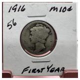 1916 MERCURY SILVER DIME |