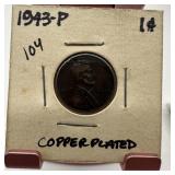 1943 WHEAT PENNY CENT COPPER PLATED |