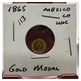 1865 MEXICO MAXIMILLIAN GOLD TOKEN COIN |