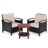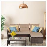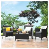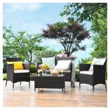 4-Piece Rattan Outdoor Patio Conversation Furniture Set With Glass Table And Comfortable Wicker Sectional Sofa-Khaki HW67772BN