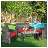 4Pcs Patio Rattan Furniture Set-Red HW63238RE