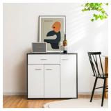 This modern buffet sideboard adds more extra storage and work space to your kitchen. You can prepare simple food on the wide cabinet top place tableware in the drawer and store other kitchen essentials in two compartments. On the right a 3-position adjustable shelf offers free height adjustment. Also each part is made of high-strength material with perfect sturdiness and the weight capacity is improved to 150 lbs.
