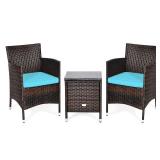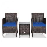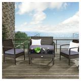 4 Pieces Patio Rattan Furniture Set With Glass Table And Loveseat-Navy HW63238NY