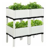 2 Tier Wooden Elevated Planter Box With Legs And Drain Holes For Balcony And Yard GT3651