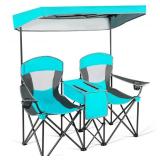 Portable Folding Picnic Double Chair With Umbrella OP70621BL