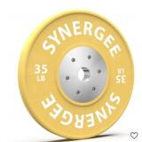 Item Is New And Refundable Only Before The Item Leaves The Building AND If Different Than Described. MSRP: $120 35LBS ★ STEEL CORE ★ – Our Competition Plates are designed with a steel core to bounce less when dropped. The lesser bounce translates to a lesser force exerted on the barbell, which means the center ring is saved from impact and damage. Less bounce also allows you to predict where the bar will travel when dropped, making them a trustworthy bar to use in smaller spaces or when working out with others. This allows you to focus on your form, challenge yourself with more weight, and crush your PRs! ★ UNLIMITED VERSATILITY ★ – Whether you are purchasing plates to go with your Synergee Barbells or to use on their own, they bestow innumerable options. From well-known squats, deadlifts, and presses, to lesser-known halos, raises, twists, and plyo moves, one order of Synergee Weight Plates brings 100’s of new exercises into your workout routine. Perfect for home gyms, CrossFit boxes, and school weight rooms.