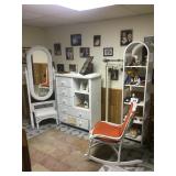 Vintage games Vintage toys Piano Antique clock Cane back chairs Hutch Crystal Silver plate Blue leather sofa Side chairs Side tables Lamps Media stand Books Nutcrackers Desk apple computer Office supplies Armoire Beds Dresser with mirror Tv Wicker furniture set Schwinn exercise bike Antique dresser Vintage orange chair Midcentury desk Ping pong table Jewelry Antique bed Holiday decor Fridge Tools Vanity Sewing machine Fishing gear Patio furniture Stone table Grill And so much more!