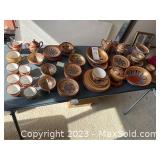 WHAT IS IN THIS AUCTION? This online auction features furniture such as a Danish teak coffee table, side tables, shelving units and others, vintage Anchor Hocking dishware, Cambridge goblets, copper pans and pots, small kitchen appliances, Hall's Superior tea and serving pieces, Limoges china, vintage electronics, Lefton china decor, model train items, tools, Thousand Faces dishes, glass art, musical instruments, wall art, Sony TV, Chub-E4 thermometer, flatware and much more!