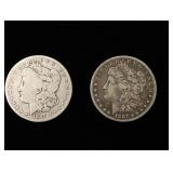 (2) Morgan Silver Dollars 1885, 1884-O